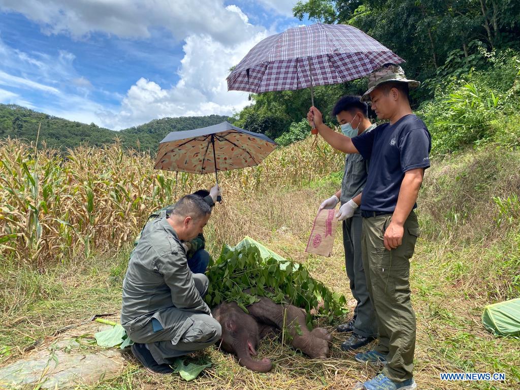KUNMING, 31 août (Xinhua) -- Un éléphanteau malade qui a été pris au piège dans une plantation de bananes dans la province chinoise du Yunnan (sud-ouest) et abandonné par son troupeau quelques jours seulement après sa naissance a été secouru par les autorités locales et reçoit actuellement des soins.