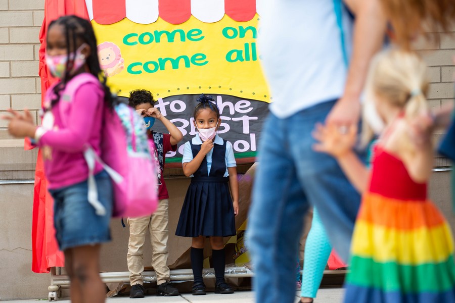 Des élèves sont sortis d'une école après la rentrée à New York, aux Etats-Unis, le 13 septembre 2021. (Photo : Michael Nagle)