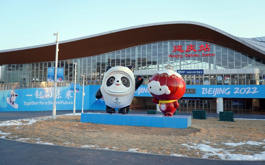 Décorations sur le thème des Jeux olympiques d'hiver de Beijing 2022 dans l'arrondissement de Yanqing, à Beijing, capitale de la Chine, le 29 janvier 2022. (Photo : Ren Chao)