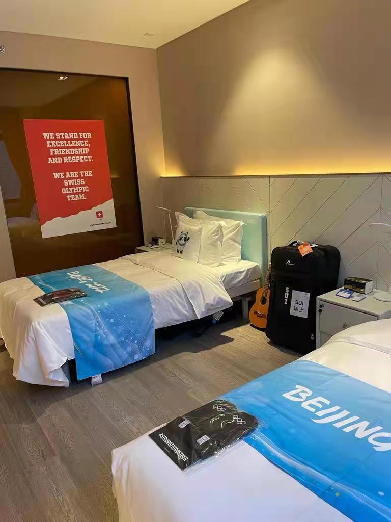 Photo de la chambre des athlètes au village olympique dans le district de Yanqing à Beijing le 27 janvier. (Ralph Stockli)