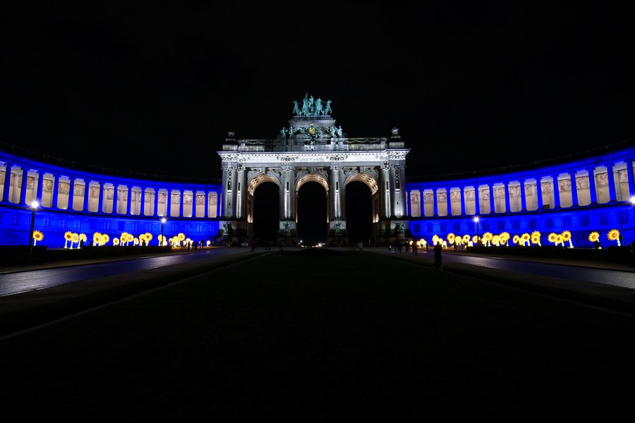 Des installations lumineuses artistiques lors de Bright Brussels, festival des lumières, à Bruxelles, capitale belge, le 11 février 2022. (Photo : Zhang Cheng)