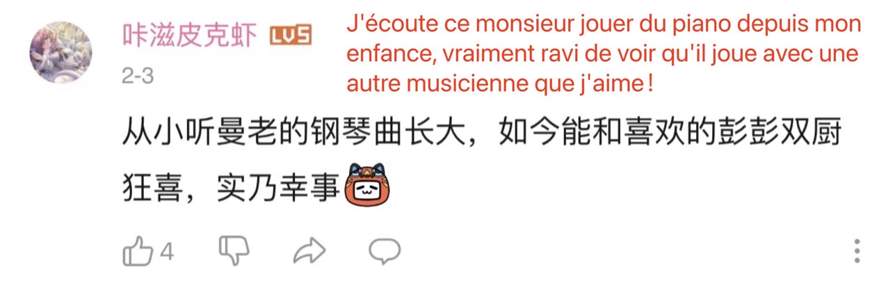 Il a expliqué qu'on lui a raconté l'histoire de la naissance de cette chanson, et expliqué pourquoi, après tant d'années, elle occupe toujours une place très importante dans la culture chinoise. "Ce que je ressens quand j'analyse cette mélodie, c'est beaucoup de fraîcheur, de légèreté, de tendresse et de bonne humeur".