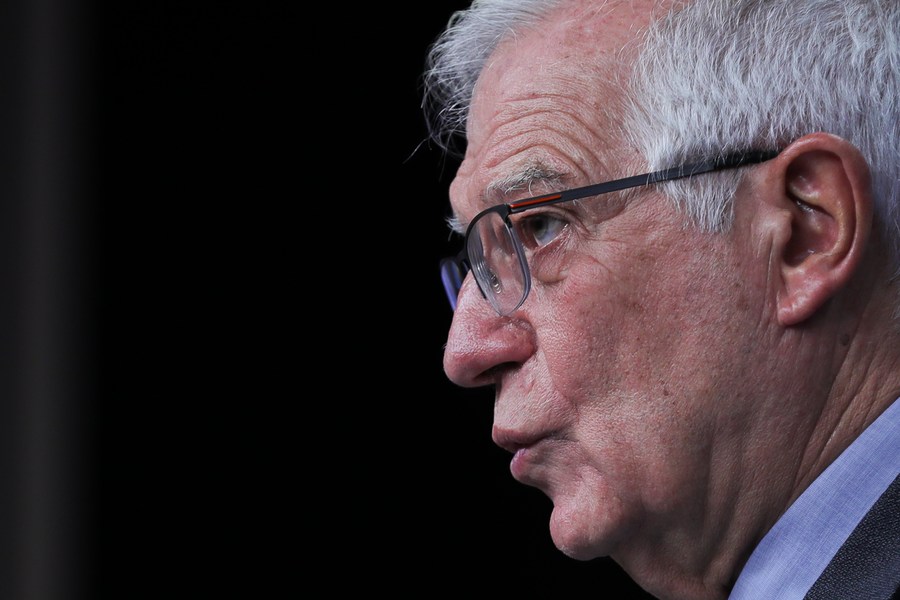 Le haut représentant de l'Union européenne pour les affaires étrangères et la politique de sécurité, Josep Borrell, participe à une conférence de presse à l'issue d'une réunion des ministres des Affaires étrangères de l'UE à Bruxelles, en Belgique, le 15 novembre 2021. (Xinhua/Zheng Huansong)