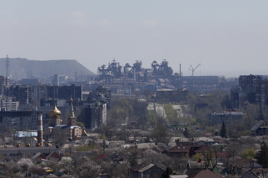 Photo prise le 20 avril 2022 montrant une vue de l'usine Azovtal à Marioupol, en Ukraine. (Xinhua/Victor)