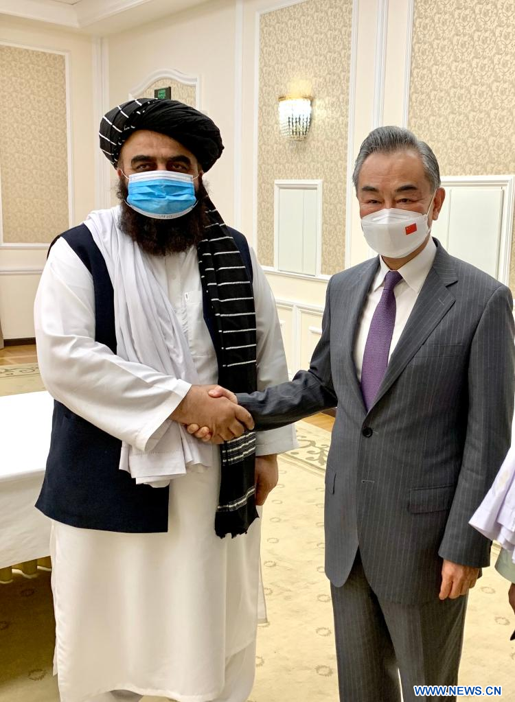 TACHKENT, 29 juillet (Xinhua) -- Le conseiller d'Etat et ministre chinois des Affaires étrangères Wang Yi s'est entretenu jeudi avec le ministre des Affaires étrangères par intérim du gouvernement intérimaire afghan, Amir Khan Muttaqi, au sujet du renforcement des relations entre les deux pays.