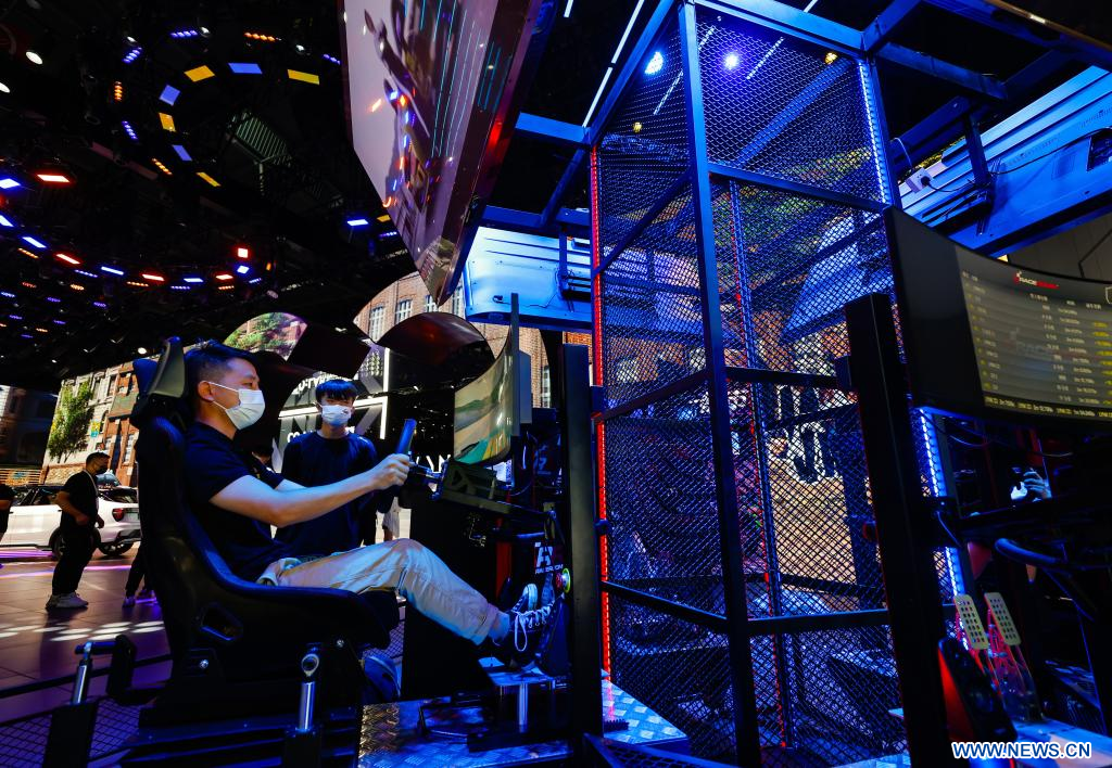 CHENGDU, 27 août (Xinhua) -- Un visiteur joue à un jeu de course lors du Salon de l'automobile de Chengdu, capitale de la province chinoise du Sichuan (sud-ouest), le 26 août 2022. Le salon, rassemblant quelque 1.600 voitures de plus de cent marques chinoises et étrangères, a ouvert ses portes vendredi. (Photo : Shen Bohan)