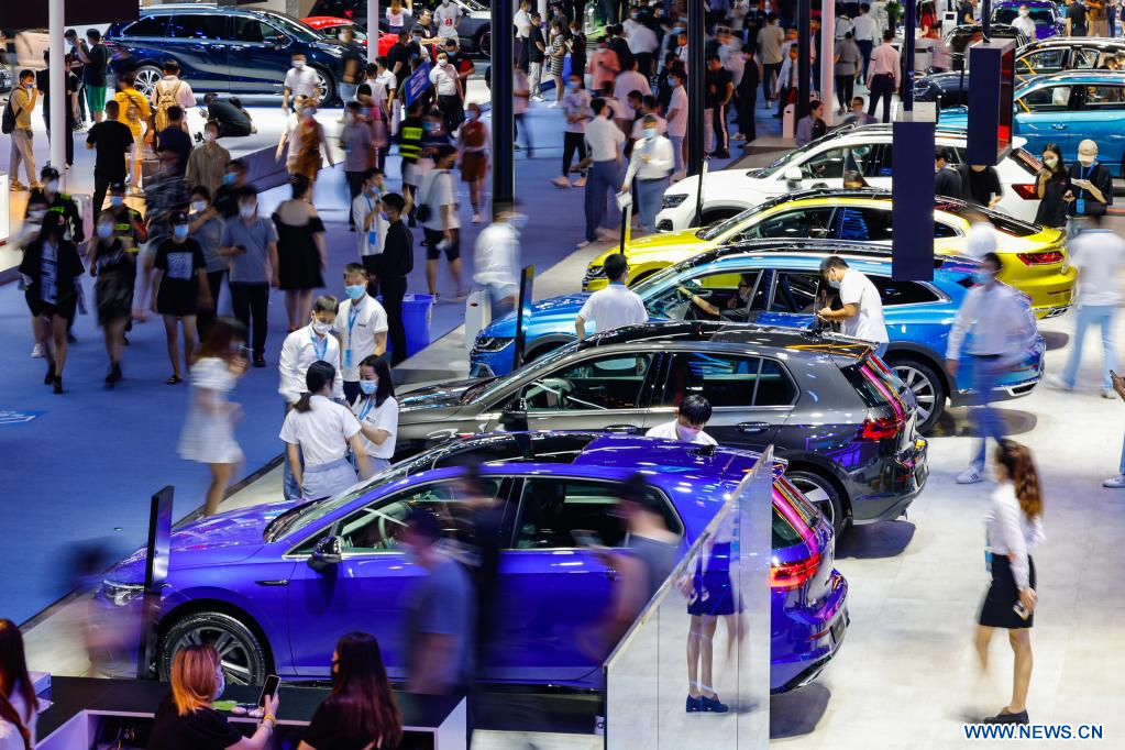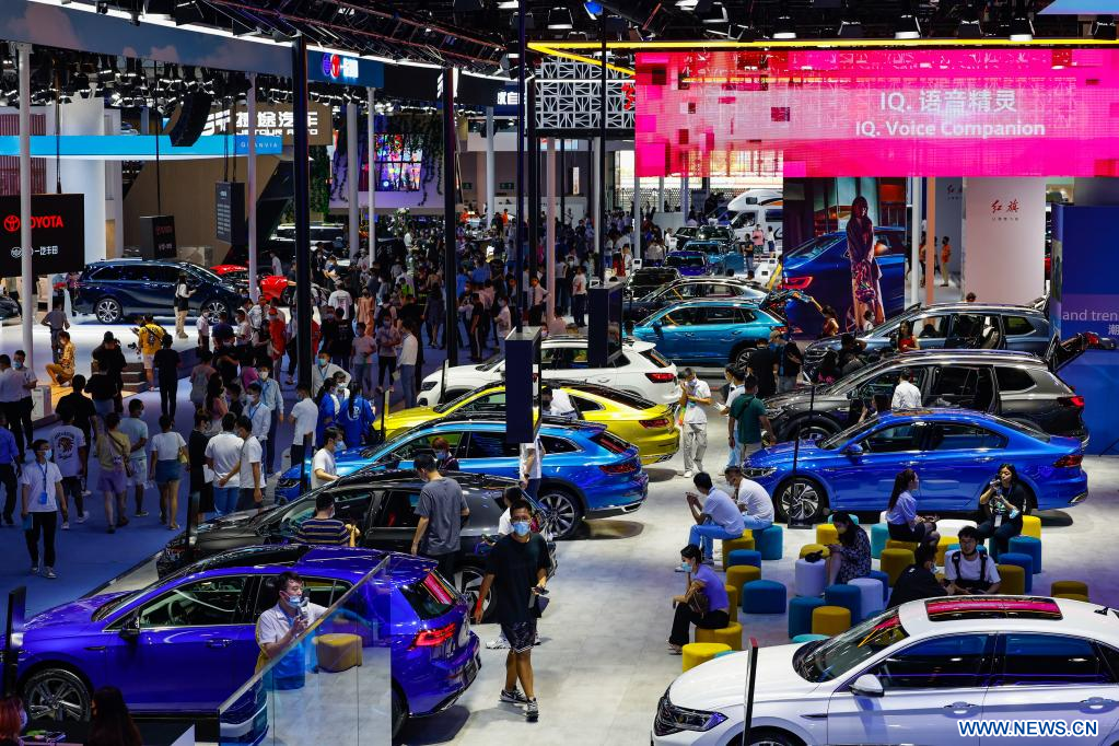 CHENGDU, 27 août (Xinhua) -- Salon de l'automobile de Chengdu, capitale de la province chinoise du Sichuan (sud-ouest), le 26 août 2022. Le salon, rassemblant quelque 1.600 voitures de plus de cent marques chinoises et étrangères, a ouvert ses portes vendredi. (Photo : Shen Bohan)