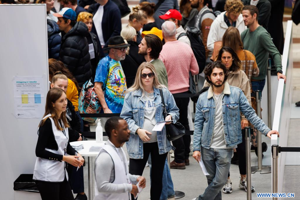Des électeurs attendent dans un bureau de vote installé dans la Gare centrale de Stockholm, en Suède, le 11 septembre 2022. Les bureaux de vote ont ouvert dimanche matin en Suède pour des élections générales serrées où s'opposent les alliances rouge de centre-gauche et bleue de centre-droite. (Xinhua/Wei Xuechao)