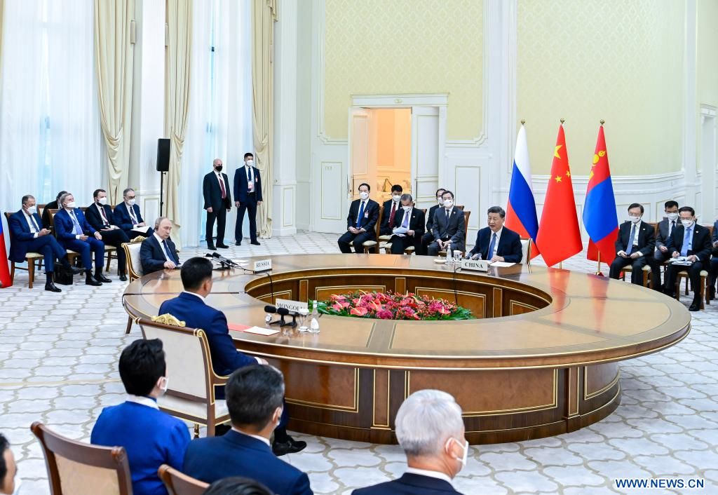 SAMARCANDE (Ouzbékistan), 15 septembre (Xinhua) -- Le président chinois Xi Jinping a participé jeudi après-midi à Samarcande (Ouzbékistan) à la sixième réunion des chefs d'Etat de la Chine, de la Russie et de la Mongolie avec ses homologues russe Vladimir Poutine et mongol Ukhnaa Khurelsukh.