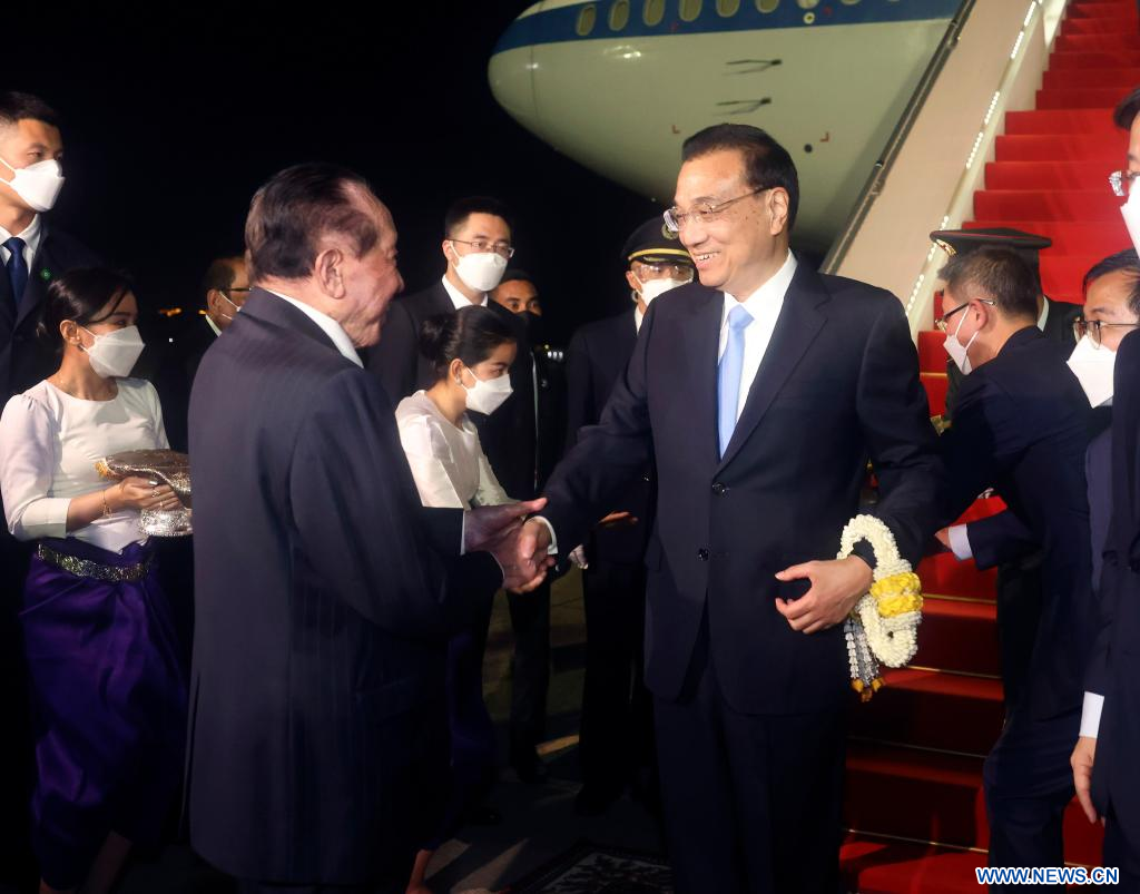 PHNOM PENH, 8 novembre (Xinhua) -- A l'invitation du Premier ministre cambodgien Hun Sen, le Premier ministre chinois Li Keqiang est arrivé mardi soir à Phnom Penh pour une série de réunions de dirigeants sur la coopération en Asie de l'Est et une visite officielle au Cambodge.