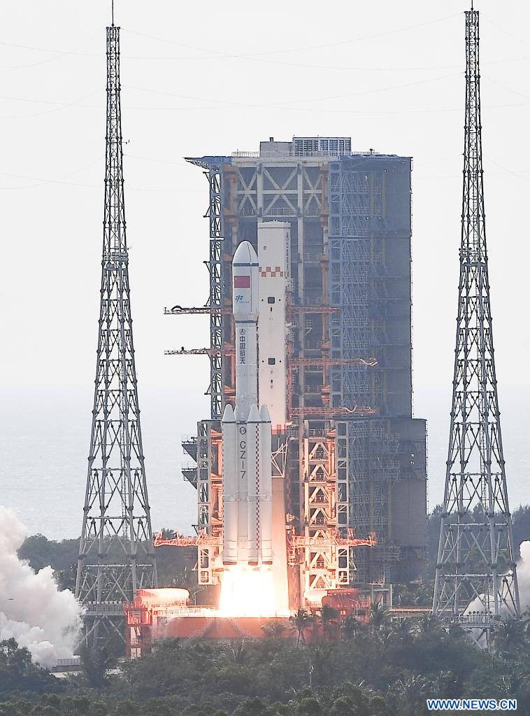 WENCHANG, Hainan, 12 novembre (Xinhua) -- La Chine a lancé samedi le vaisseau spatial cargo Tianzhou-5 pour livrer des fournitures à la station spatiale, dont la construction devrait être achevée cette année.