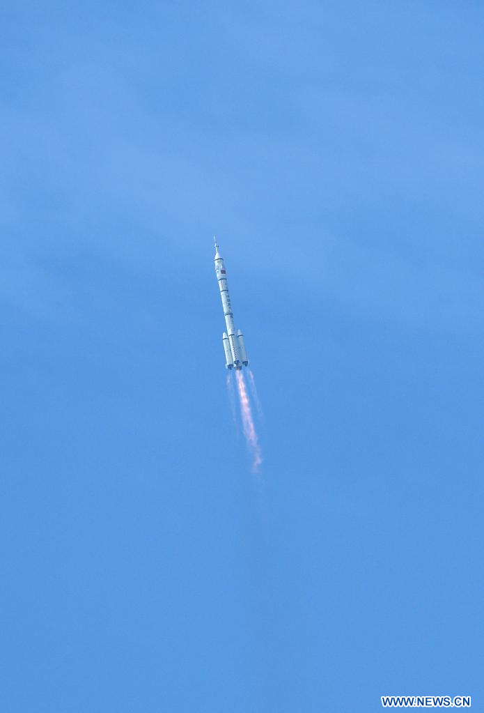Le vaisseau spatial, monté sur une fusée porteuse Longue Marche-2F, a décollé à 9h31 (heure de Beijing) depuis le Centre de lancement de satellites de Jiuquan, dans le nord-ouest de la Chine, a déclaré l'Agence chinoise des vols spatiaux habités (China Manned Space Agenc, CMSA).