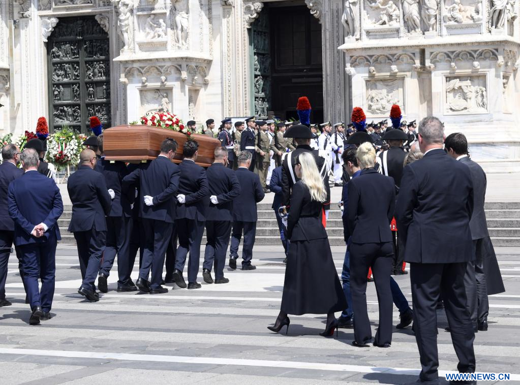 ROME, 14 juin (Xinhua) -- Des milliers de personnes en deuil se sont rassemblées mercredi autour de la cathédrale du Duomo de Milan pour faire leurs adieux à Silvio Berlusconi, magnat de la presse et ancien Premier ministre italien décédé lundi à l'âge de 86 ans.