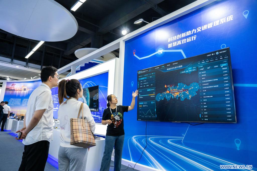 CHANGSHA, 28 octobre (Xinhua) -- Des visiteurs lors du deuxième sommet international sur les applications du système de navigation par satellite BeiDou (BDS), à Zhuzhou, dans la province chinoise du Hunan (centre), le 26 octobre 2023. (Photo : Chen Sihan)