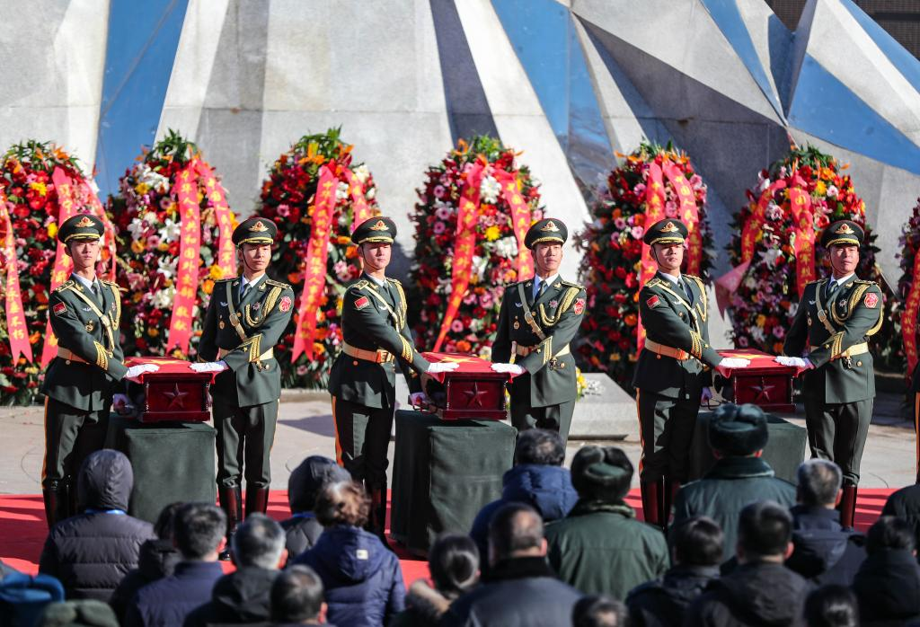 SHENYANG, 24 novembre (Xinhua) -- Les dépouilles de 25 soldats des Volontaires du peuple chinois (VPC) tués lors de la Guerre de résistance à l'agression américaine et d'aide à la République populaire démocratique de Corée (RPDC) (1950-1953) ont été enterrées vendredi dans un cimetière de Shenyang, capitale de la province chinoise du Liaoning (nord-est).