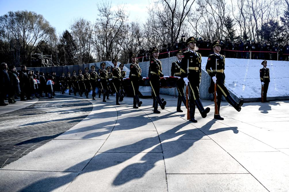 La cérémonie d'enterrement a commencé au cimetière des martyrs des VPC à Shenyang, à 10H00, alors qu'une fanfare militaire commençait à jouer.