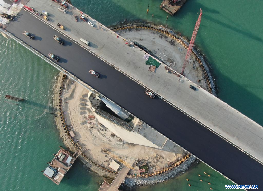 La dernière coulée de béton s'est déroulée mardi, alors que les travaux du tunnel sous-marin à tube immergé, qui s'étend sur environ 6,8 km, touchent à leur fin, selon l'entreprise Guangdong Provincial Communication Group Co., Ltd.