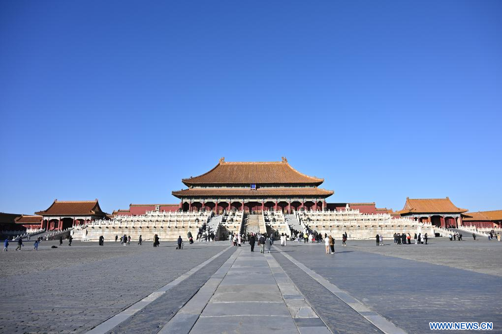 BEIJING, 30 novembre (Xinhua) -- Des touristes visitent le Musée du Palais, également connu sous le nom de Cité interdite, à Beijing, capitale chinoise, le 29 novembre 2023. (Photo : Zhang Yuwei)