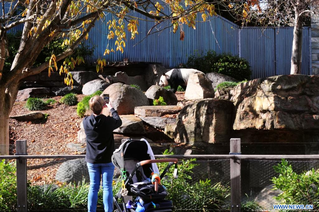 ADELAIDE (Australie), 1er juin (Xinhua) -- Une touriste prend des photos d'un panda géant au Zoo d'Adélaïde, en Australie, le 1er juin 2024. Le panda géant mâle Wang Wang et le panda géant femelle Fu Ni ont été prêtés par la Chine depuis 2009 et font partie des principales attractions du Zoo d'Adélaïde. (Xinhua/Zhang Jianhua)