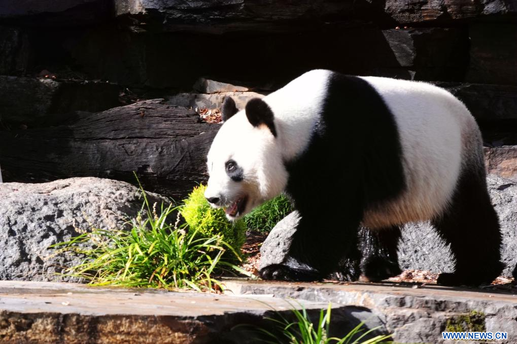 ADELAIDE (Australie), 1er juin (Xinhua) -- Le panda géant Wang Wang profite du soleil d'hiver au Zoo d'Adélaïde, en Australie, le 1er juin 2024. Le panda géant mâle Wang Wang et le panda géant femelle Fu Ni ont été prêtés par la Chine depuis 2009 et font partie des principales attractions du Zoo d'Adélaïde. (Xinhua/Zhang Jianhua)