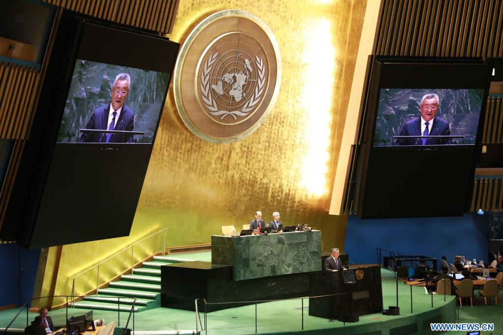 NEW YORK (Nations Unies), 17 septembre (Xinhua) -- Fu Cong, représentant permanent de la Chine auprès des Nations Unies, a exhorté mardi Israël à répondre à l'appel pressant de la communauté internationale en mettant immédiatement fin à sa présence illégale dans le territoire palestinien occupé.