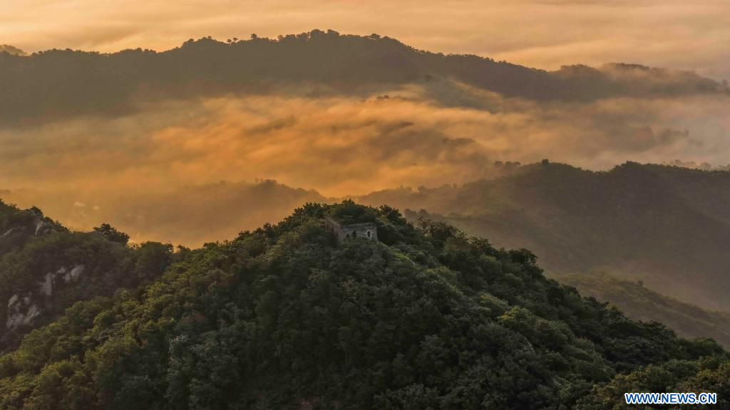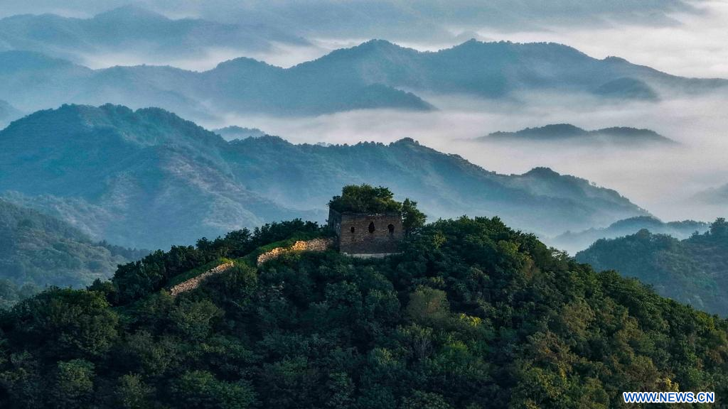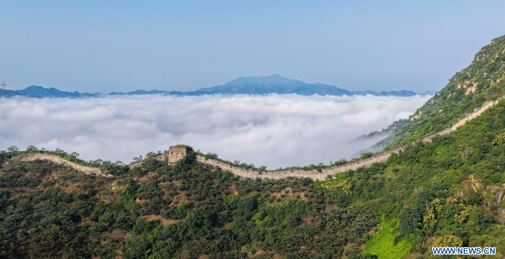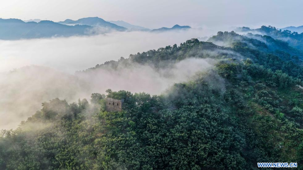 ZUNHUA, 2 août (Xinhua) -- Vue aérienne de la Grande Muraille à Zunhua, dans la province du Hebei, dans le nord de la Chine, le 1er août 2025. (Photo : Liu Mancang)