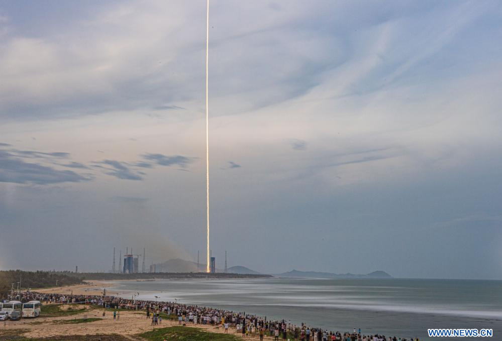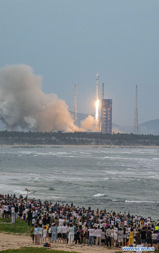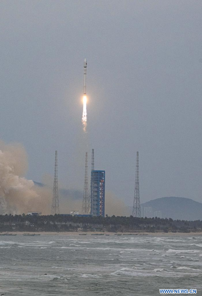 WENCHANG, Hainan, 5 août (Xinhua) -- La Chine a lancé lundi une fusée porteuse Longue Marche-12, envoyant un groupe de satellites Internet dans l'espace.
