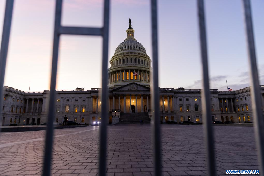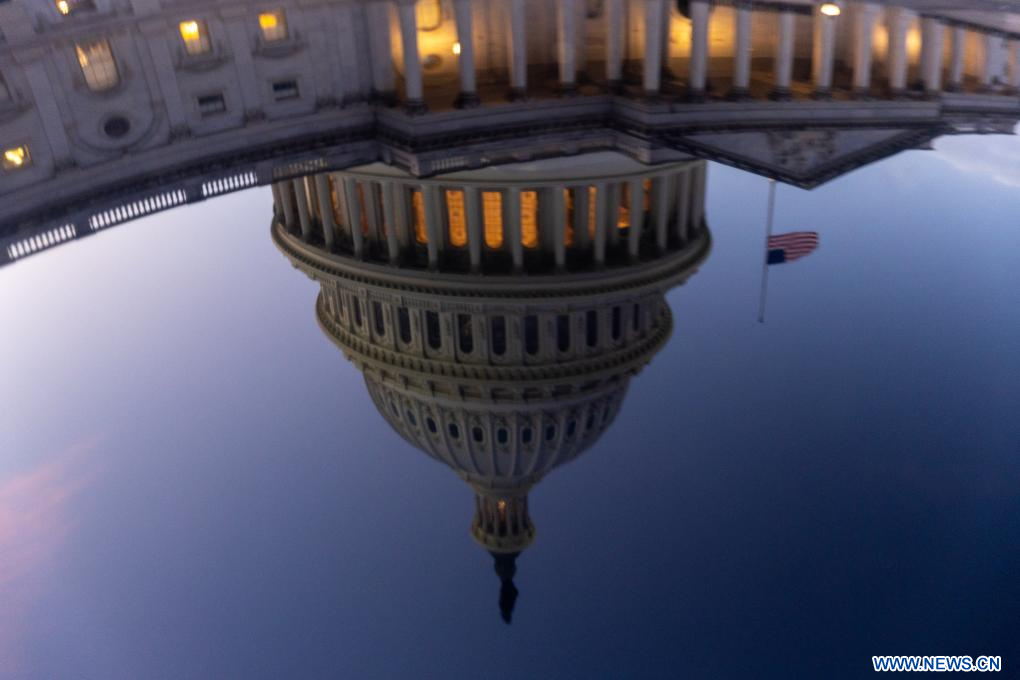 WASHINGTON, 5 novembre (Xinhua) -- Photo prise le 5 novembre 2025 montrant le Capitole des Etats-Unis à Washington. L'arrêt du fonctionnement du gouvernement fédéral américain est entré mercredi dans sa 36e journée consécutive, battant le record de 35 jours précédemment établi au cours de la période 2018-2019, devenant ainsi la plus longue paralysie budgétaire de l'histoire des Etats-Unis. (Xinhua/Hu Yousong)
