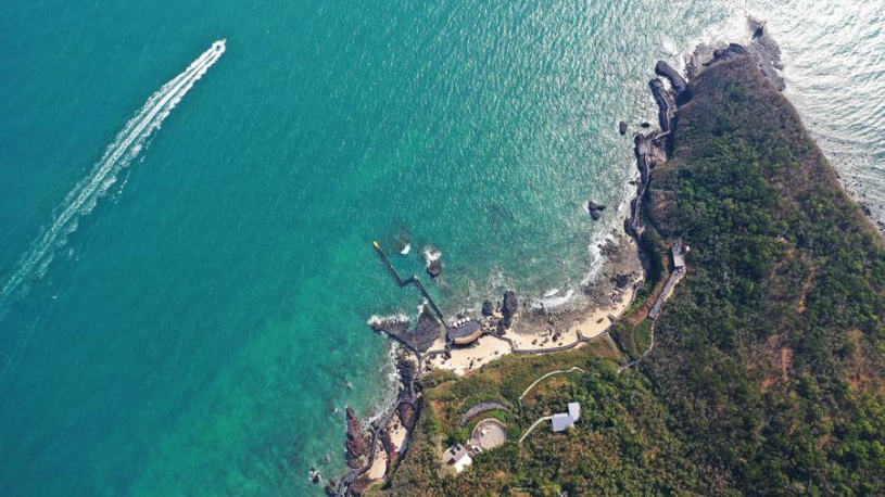 MER DE CHINE MERIDIONALE, 26 décembre (Xinhua) -- Photo aérienne du navire Huangyan de la Garde côtière chinoise (GCC) patrouillant dans les eaux territoriales de Huangyan Dao de la Chine, le 14 novembre 2025.