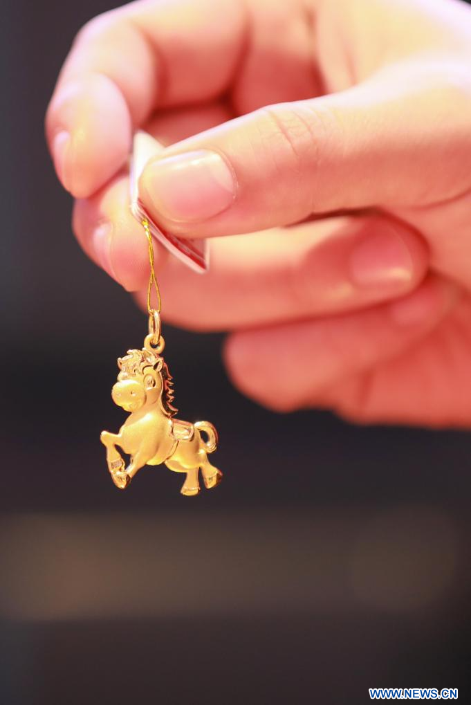 BEIJING, 21 janvier (Xinhua) -- Une vendeuse présente des produits en or sur le thème de l'année du cheval dans un magasin de la ville de Binzhou, dans la province chinoise du Shandong (est), le 16 janvier 2026. (Photo : Chu Baorui)