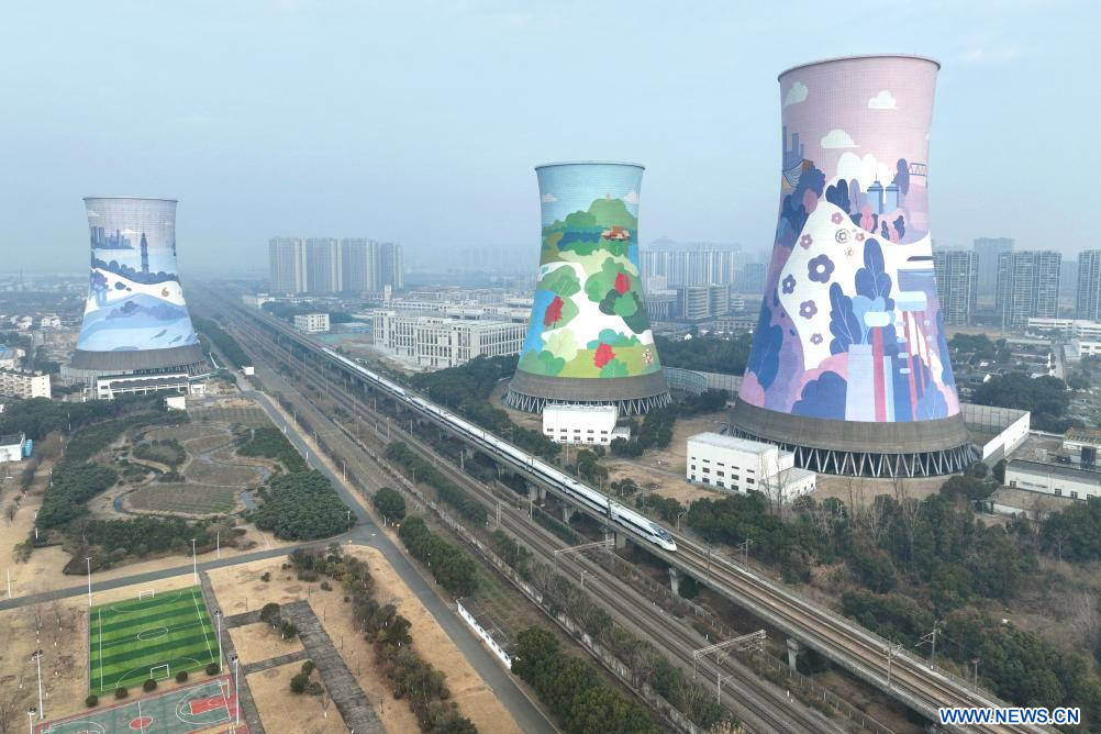 BEIJING, 26 janvier (Xinhua) -- Un train à grande vitesse circulant à Shijiazhuang, ville de la province chinoise du Hebei (nord), le 25 janvier 2026.