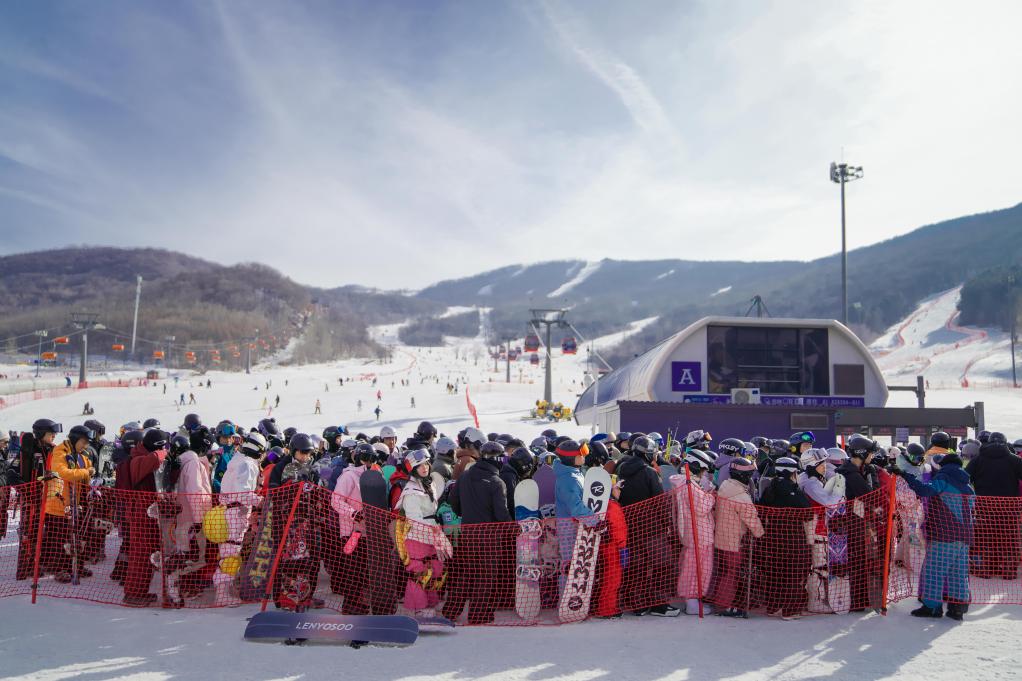 BEIJING, 21 février (Xinhua) -- Des personnes font la queue pour prendre un télésiège dans une station de ski de la ville de Jilin, dans la province du Jilin, dans le nord-est de la Chine, le 20 février 2026.