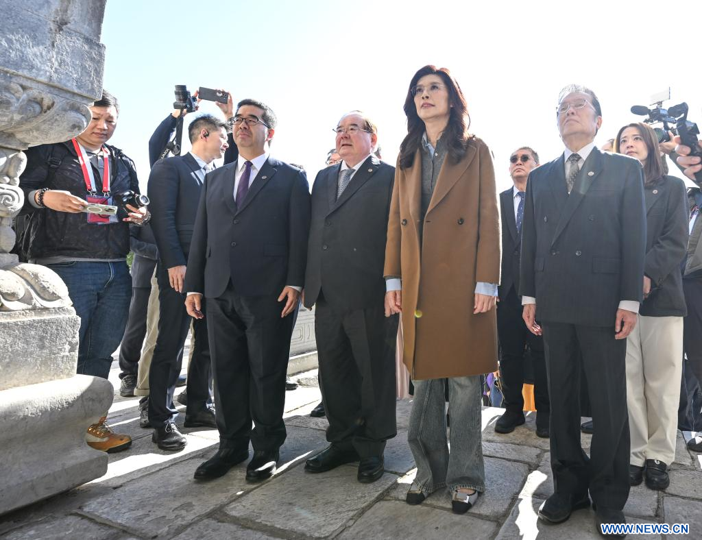La délégation est arrivée vers 9h00 au temple. Dans une salle commémorative dédiée à Sun Yat-sen, les membres de la délégation se sont inclinés à trois reprises devant une statue en marbre blanc représentant Sun Yat-sen en pied, puis se sont rendus au cénotaphe pour lui rendre hommage.