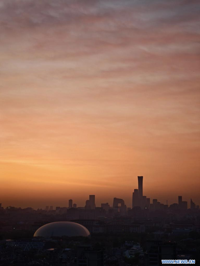 BEIJING, 21 avril (Xinhua) -- Cette photo prise le 21 avril 2026 montre un paysage de Beijing, capitale chinoise, à la lueur de l'aube. (Photo : Xing Guangli)