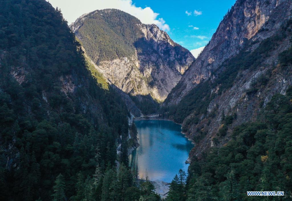 GANZI, Sichuan, 26 octobre (Xinhua) -- Vue aérienne du site touristique de Babagou, à Baiyu, dans la préfecture autonome tibétaine de Ganzi, dans la province chinoise du Sichuan (sud-ouest), le 23 octobre 2021. (Photo : Wang Xi)