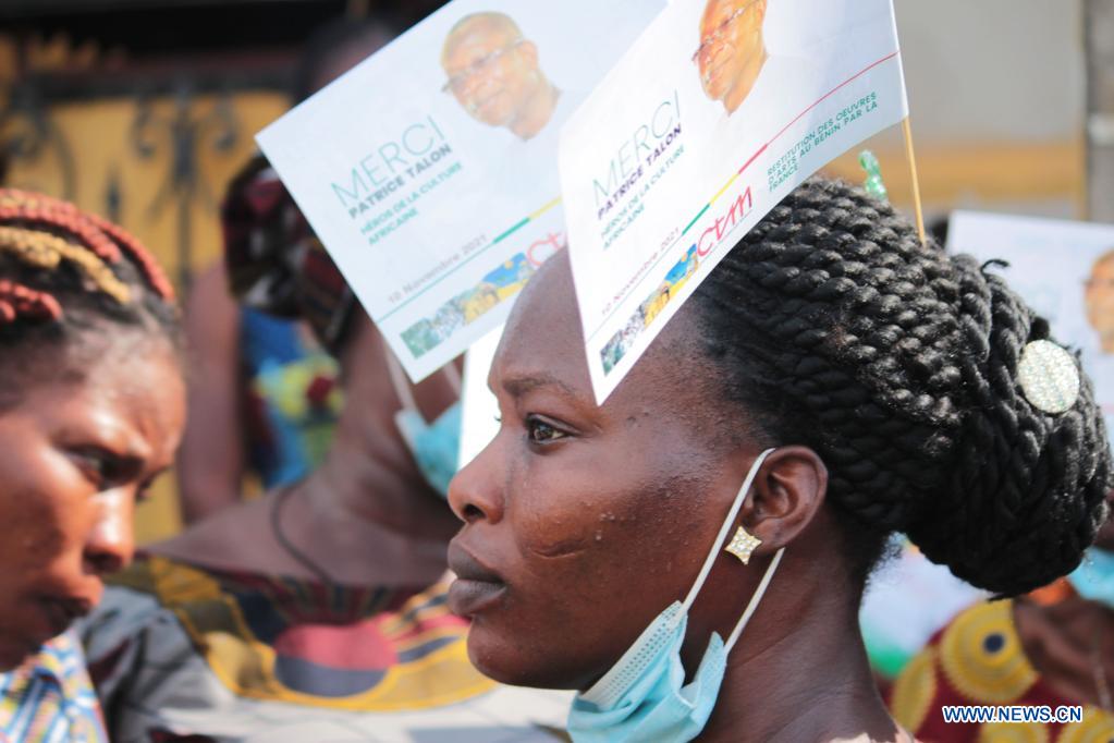 COTONOU, 10 novembre (Xinhua) -- L'avion transportant les 26 oeuvres des trésors royaux d'Abomey, emportés par l'armée française lors de la conquête de novembre 1892, a atterri mercredi à Cotonou, a constaté Xinhua sur place.