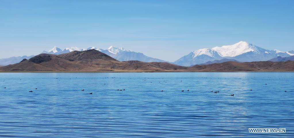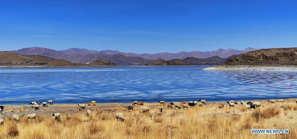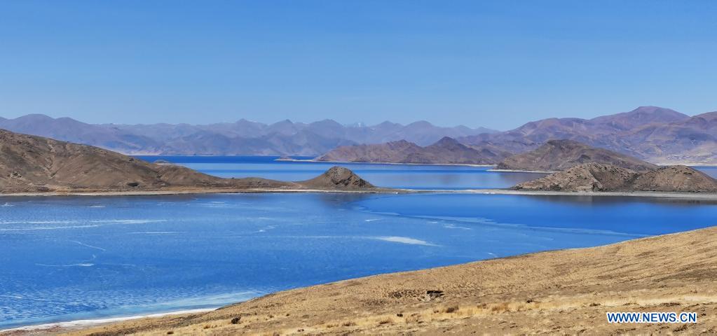 Paysage du lac Yamzbog Yumco à Shannan, dans la région autonome du Tibet (sud-ouest de la Chine), le 19 mars 2022. (Xinhua/Shen Hongbing)