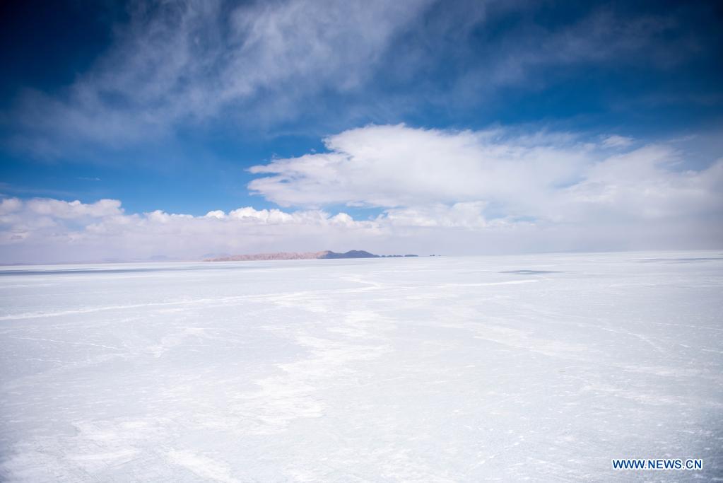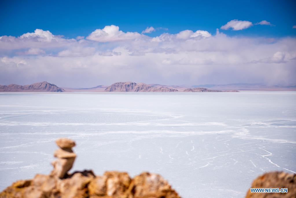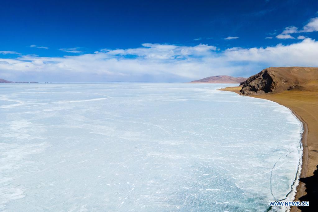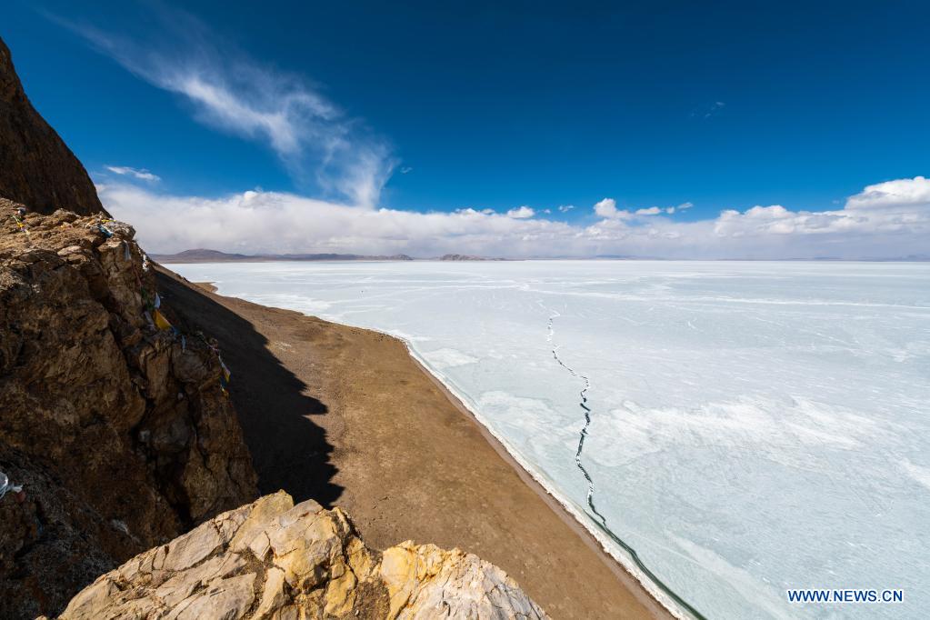 Paysage du lac Serling Tso gelé à Nagqu, dans la région autonome du Tibet (sud-ouest de la Chine), le 24 mars 2022. (Xinhua/Kelsang Namgyai)