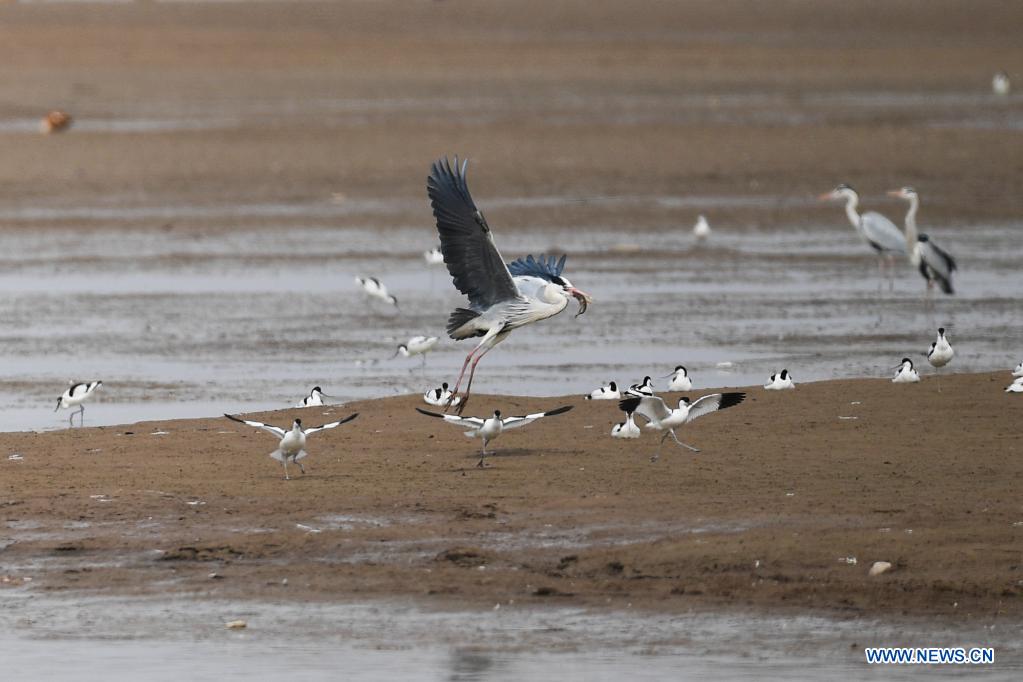 Des oiseaux migrateurs au réservoir de Hailiu dans la bannière gauche de Tumd, à Hohhot, dans la région autonome de Mongolie intérieure, dans le nord de la Chine, le 28 mars 2022. (Xinhua/Liu Lei)
