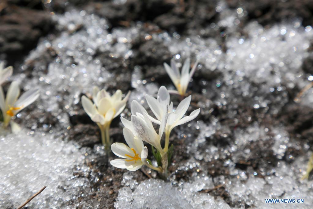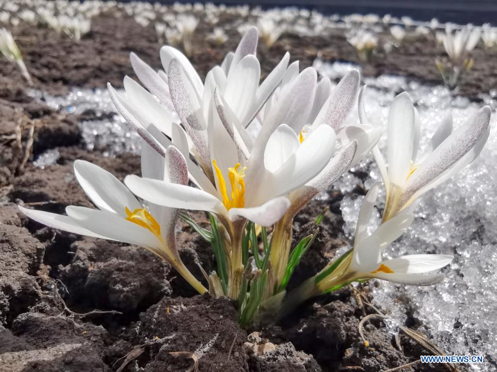 ZHAOSU, 7 avril (Xinhua) -- Des fleurs de gagée s'épanouissent sur la prairie dans le district de Zhaosu, dans la région autonome ouïgoure du Xinjiang (nord-ouest), le 5 avril 2022. (Photo : Li Wenwu)