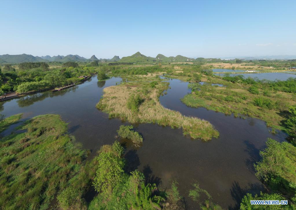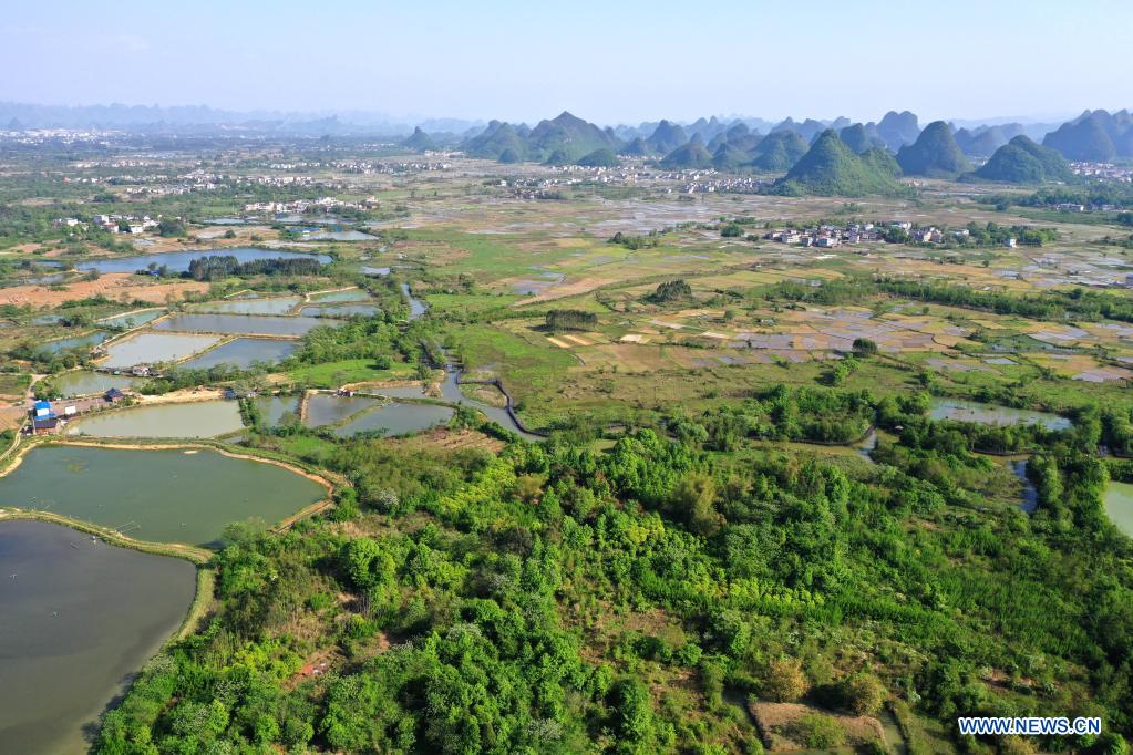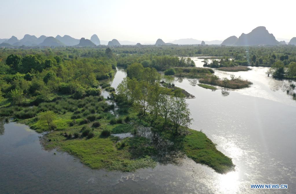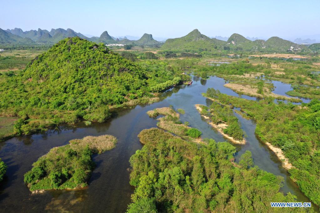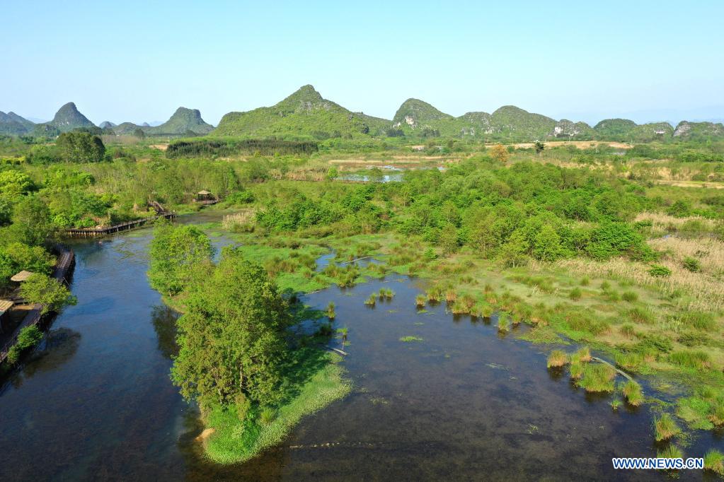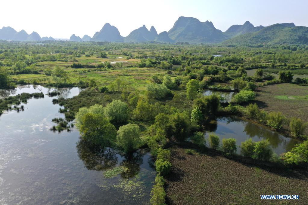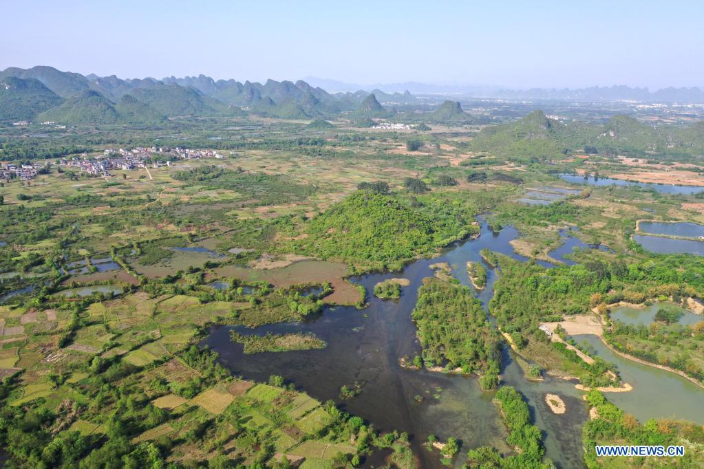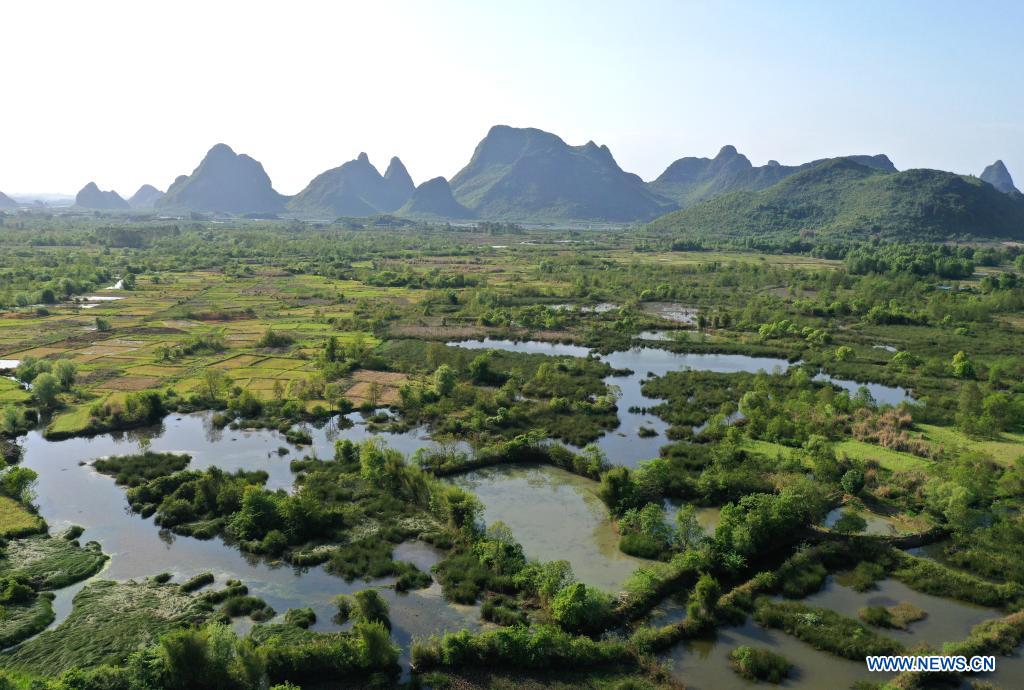 Paysage des zones humides de Huixian à Guilin, dans la région autonome Zhuang du Guangxi (sud de la Chine), le 7 avril 2022. (Xinhua/Zhou Hua)