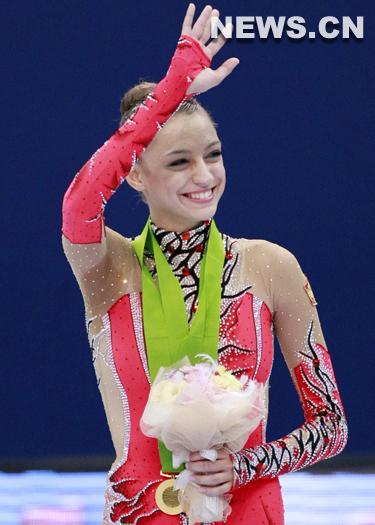 La Russe Evgenia Kanaeva a remporté cette année toutes les cinq médailles d'or des compétitions individuelles aux Championnats du monde de la gymnastique rythmique: médaille d'or au concours général individuel, médaille d'or à la corde, médaille d'or au cerceau, médaille d'or au ballon, médaille d'or au ruban.