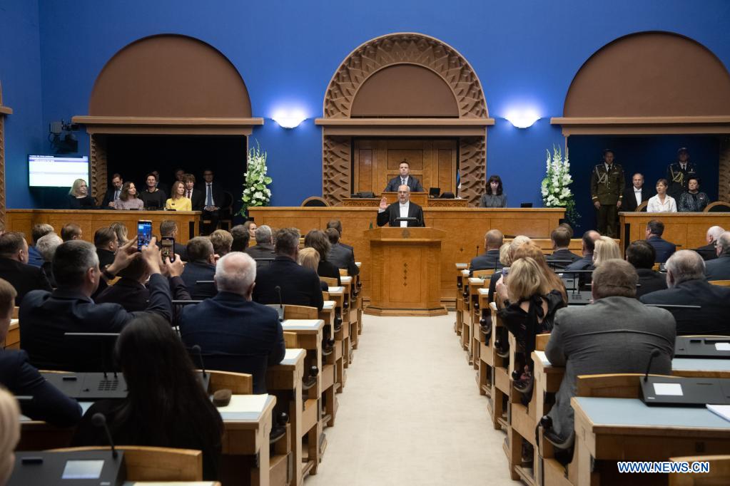 TALLINN, 11 octobre (Xinhua) -- Alar Karis a prêté serment lundi à Tallinn en tant que nouveau président de l'Estonie.