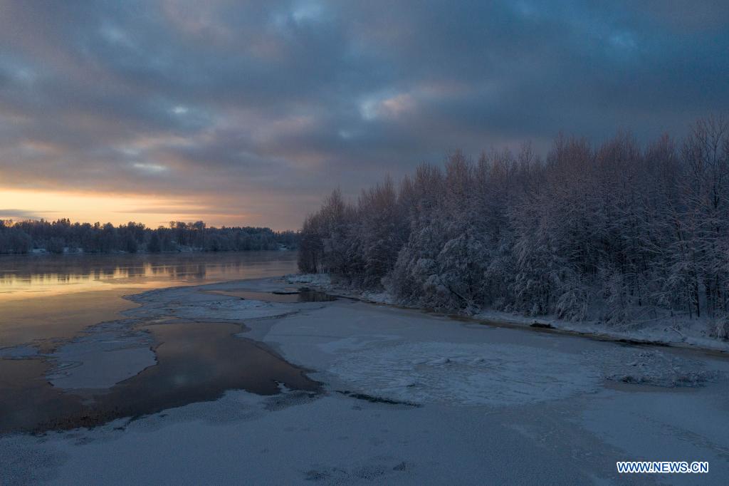 Paysage hivernal à Ogre, en Lettonie, le 7 décembre 2021. (Xinhua/Edijs Palens)