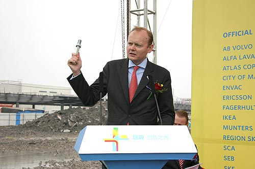 La Suède est l'un des pays les plus innovants reconnu par le monde entier. Le thème du pavillon de Suède est "l'Esprit d'innovation". "Le pavillon de Suède organisera de diverses activités durant l'Expo 2010 pour renforcer l'image de la Suède dans les cœurs du public.", souligne Gunnar Wieslander, "Le développement durable est le point important des activités de la Suède." Gunnar Wieslander a mis dans la boîte commémorative pour l'inauguration de la construction du pavillon de Suède, une télécopie du document de l'établissement des relations diplomatiques entre la Chine et la Suède, des débris de céramique chinoise découverts dans la mer, un récepteur de téléphone ancien, "Fifi Brindacier" (personnage principal d'une série de romans pour enfants écrits par l'auteur suédois Astrid Lindgren) aimé par les enfants du monde, un boulon et un écrou qui symbolise la durabilité.