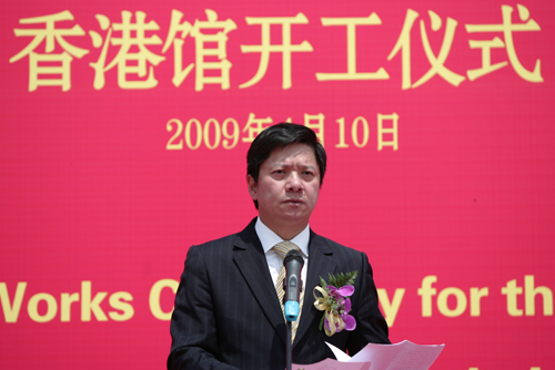 Patrick Chan, représentant du pavillon de Hong Kong, prononce un discours
