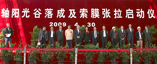 Les deux premières vallées de soleil en forme de trompette le long de l'Axe de l'Expo ont été achevées le 30 avril, ce qui signifie que les travaux des structures principales de l'Axe de l'Expo seront bientôt finis. ZHONG Yanqun, directrice adjointe professionnelle du Comité exécutif pour l'Expo 2010 et DING Hao, directeur adjoint du Bureau de coordination de l'Expo 2010, ont assisté à la cérémonie d'achèvement.