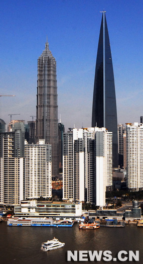 Photo prise le 26 janvier montrant un navire de passagers lors des essais d'une entrée aquatique du site de l'Expo pratiquement achevée, du côté de la rivière Huangpu à Shanghai. Les sept entrées aquatiques du site de l'Expo et les ferries spécialement affrétés pour l'évènement entreront en opération à l'ouverture de l'exposition universelle de 2010, en mai.