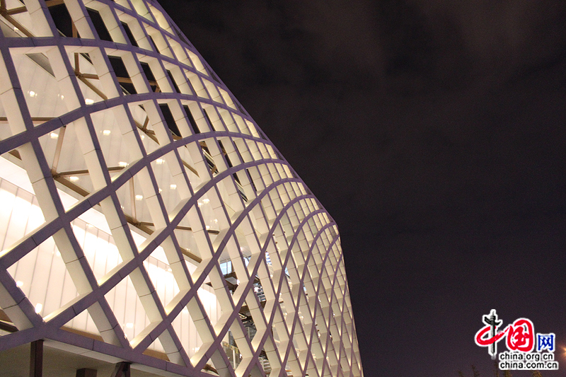 Le Pavillon France se pare d'illuminations nocturnes, photo prise le 26 avril (Li Zhijian/China.org)