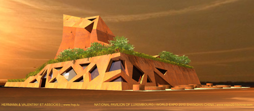 Le concepteur, influencé en effet par le nom du Luxembourg traduit en chinois, a inventé une façon de sculpter une seule roche géante. Le Luxembourg en chinois veut dire la forêt et le château, donc le pavillon luxembourgeois s'assimile à un château ouvert entouré d'arbres.